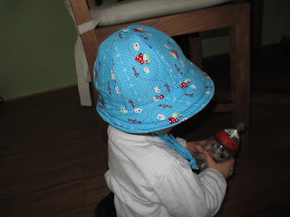 Hab erst einmal aus Stoffresten eine Puppenbeanie genäht falls doch etwas schief geht.